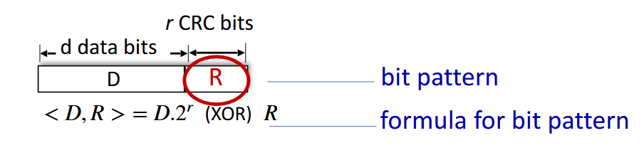 The core goal is that we choose CRC bits such that is exactly divisible by (mod 2). On the receiver side, we divide by . If there’s a non-zero remainder, then we’ve detected an error. We can detect all burst errors less than bits.