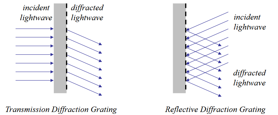 where is the spacing between the gratings, is the incident angle, and is the diffracted angle. We follow a sign convention: if the ray points upwards, and if the ray points downwards.