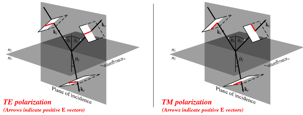 - TE polarisation (transverse electric) is when is polarised normal to the plane of incidence.