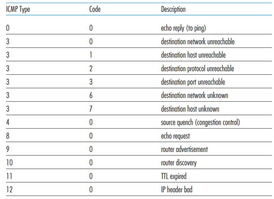 The Internet Control Message Protocol (ICMP) is a network layer protocol used by hosts and routers to communicate network-level information. It allows for error reporting (for unreachable hosts, networks, ports, protocols). It runs in the network layer just “above” IP, in that ICMP messages are carried inside IP datagrams (with protocol number 1), just as TCP or UDP might be.