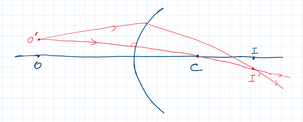 Note! Rays going through the optical centre (I assume where the OA intersects) won’t change direction, i.e., the angles wrt the optical axis are equal. Every OIS has an optical centre.