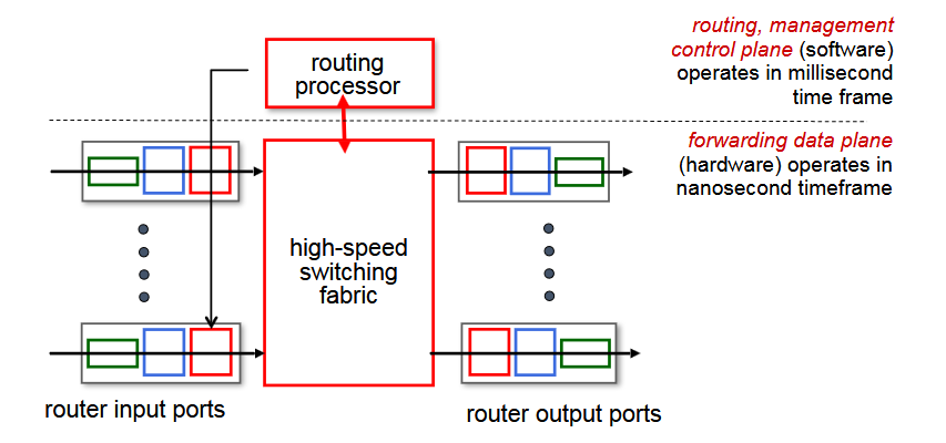 - There’s decentralised switching, i.e., using header field values, the output port is looked-up in the input port memory.