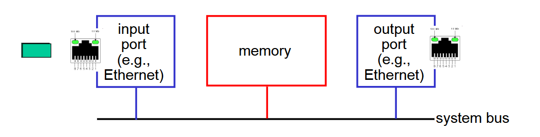 Switching via memory used traditional CPUs to copy input packets to system memory and write it into the output port’s buffer. This speed was limited by memory bandwidth. Note also that there are two bus crossings per datagram in this scheme.
