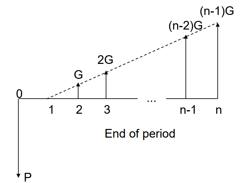 A gradient series has each successive cash flow increase by a fixed amount equal to .