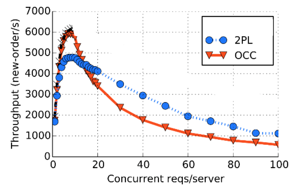 - Optimistic concurrency control (OCC) accesses items without locking, as if they will succeed. Then, it checks whether reads/writes are serialisable only at commit time (i.e., acquire locks at the end).