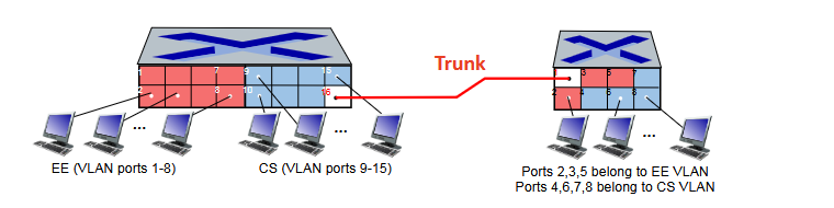 Port-based VLANs physically group switch ports so that the physical switch operates as multiple virtual switches. This is controlled by the switch’s management software. This achieves traffic isolation by allowing frames to/from certain ports to only reach them (no broadcast issue). Ports can also be dynamically assigned (so users can switch groups easily). And forwarding between VLANs is done via routing (but in practice, usually in the same hardware).