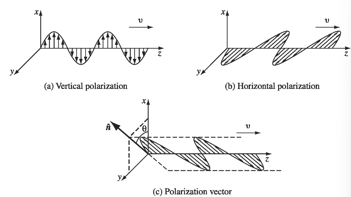 - Linear polarisation is when the time evolution of is a line on an -plane, assuming a propagation direction.